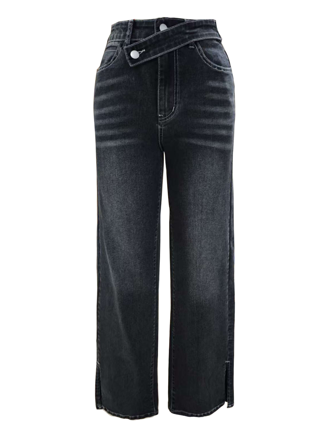 ✨ Jean Femme Taille Haute – Coupe Légèrement Évasée & Taille Oblique ✨