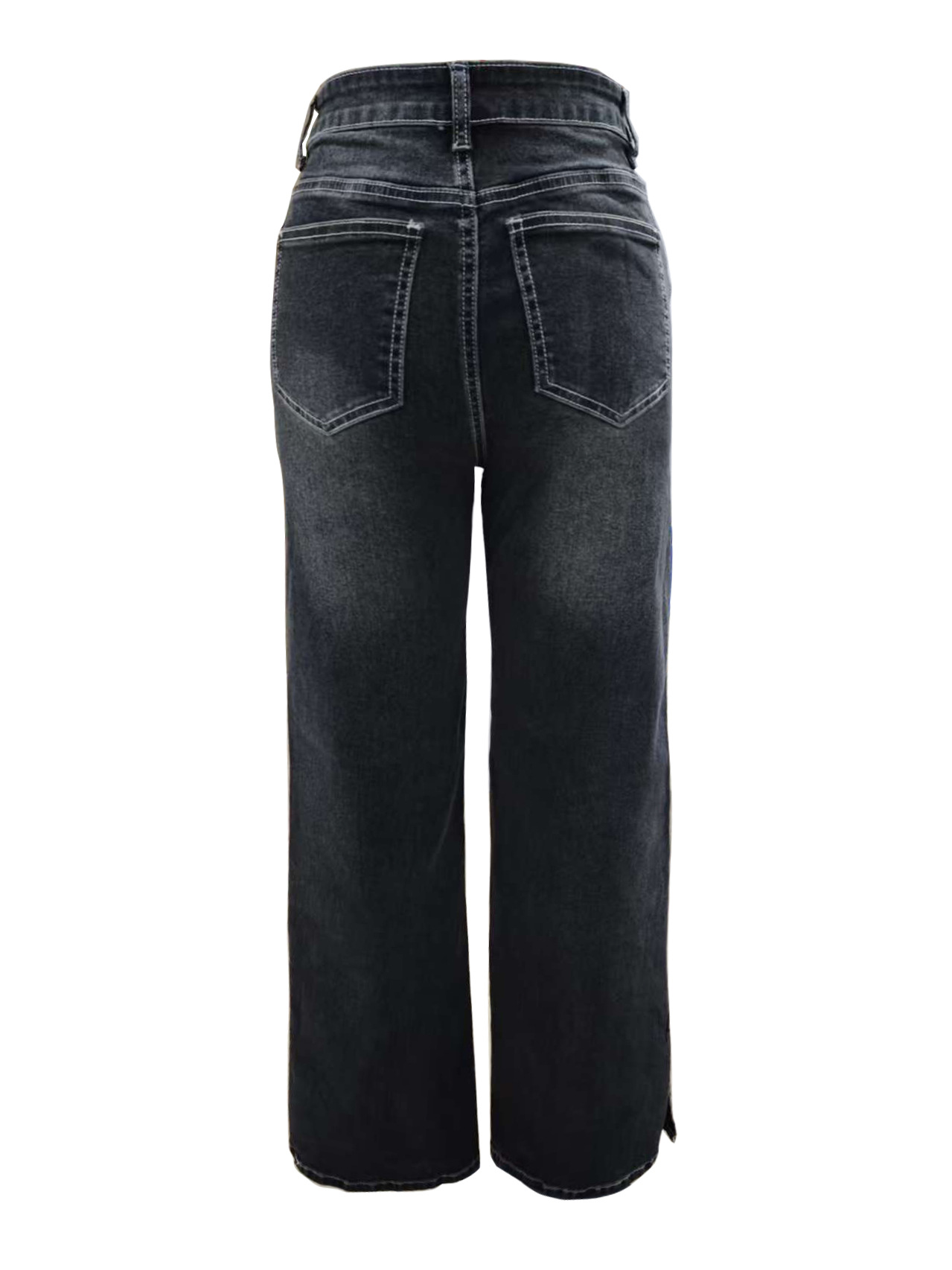 • Coupe : Taille haute, jambes droites légèrement évasées