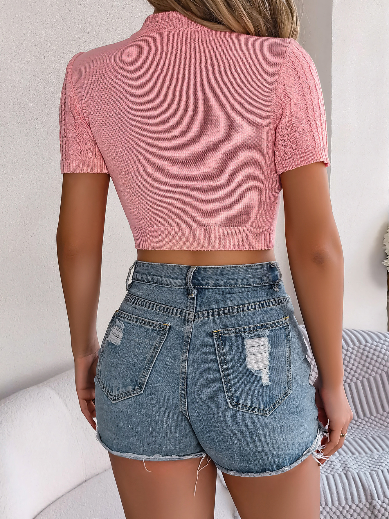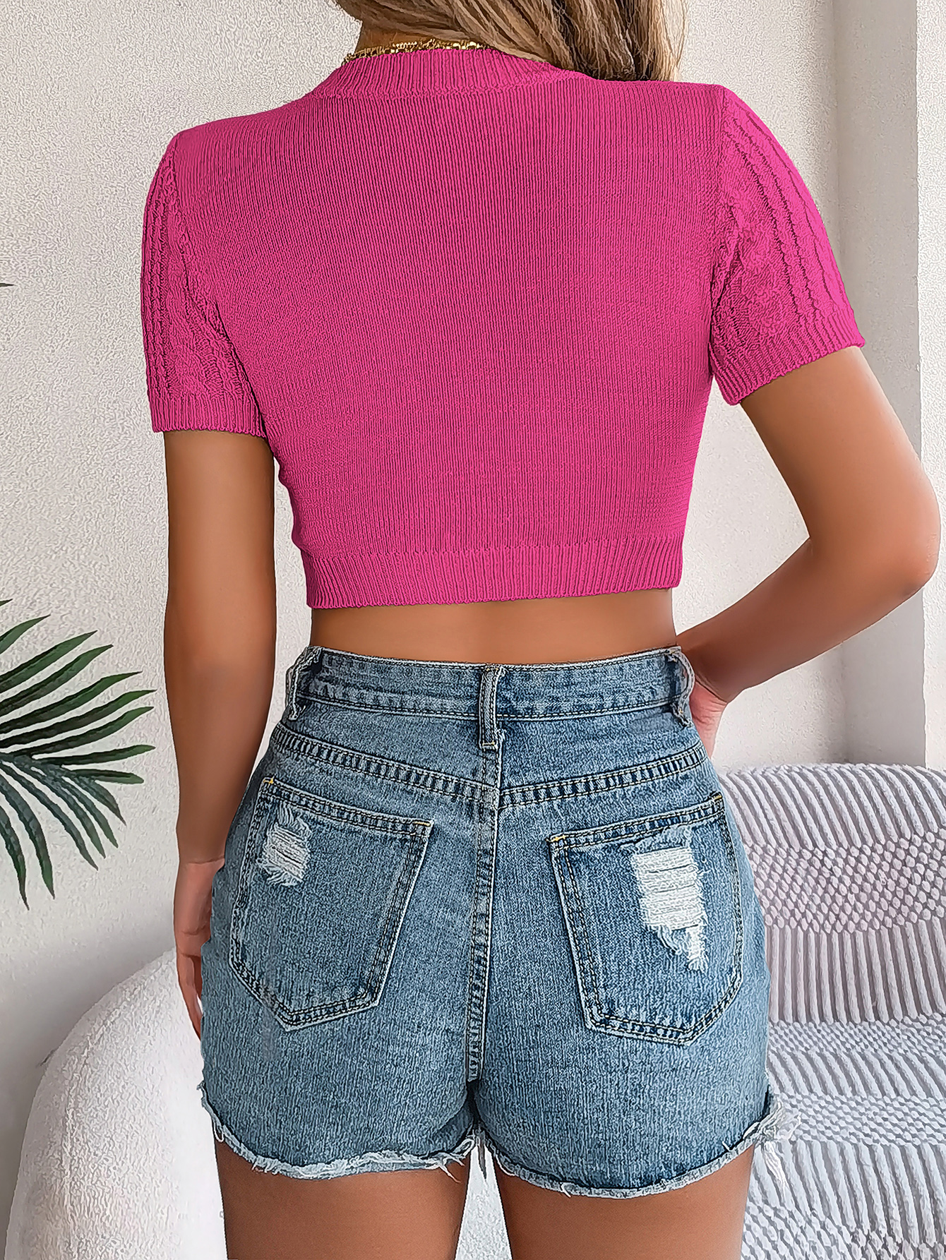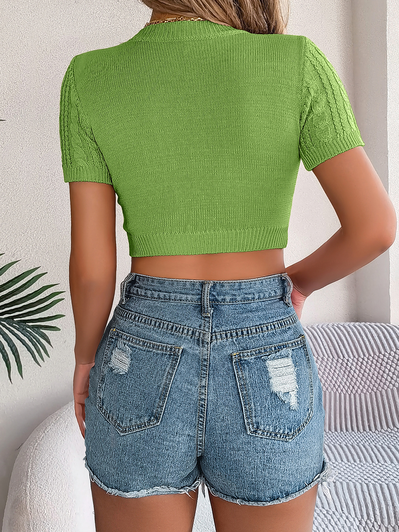 ✨ Top Court Femme – Maille Tressée & Manches Courtes ✨